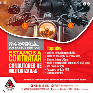Local de entrega da candidatura: Bairro do Fomento, Av. da Matola Nº 406 – Sede da MICASU Segurança
